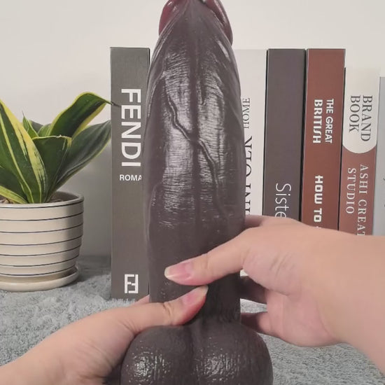 27,5 cm Stor Tjock Svart Realistisk Dildo med Detaljerad Struktur - Dual Density